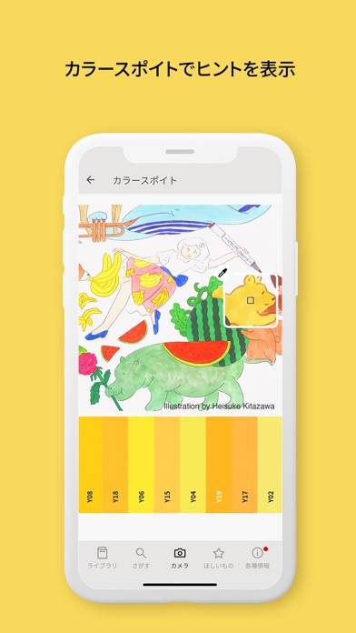「この絵に使った色は何だろう?」そんな疑問にも対応。写真やイラストから色を読み取り、推奨する色をリストアップできます。欲しい色は星マークでメモ。お買い物リストとしても役立ち、アート制作を補助してくれます。