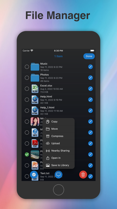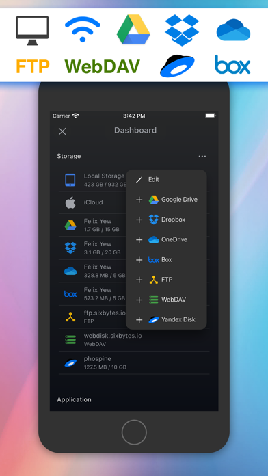 スマホ内とクラウド内のデータを、1つのアプリ上で行き来しながら管理。『Dropbox』、『Google Drive』、『OneDrive』、『Box』、『iCloud Drive』などに対応しています。