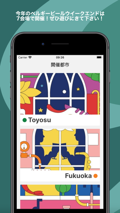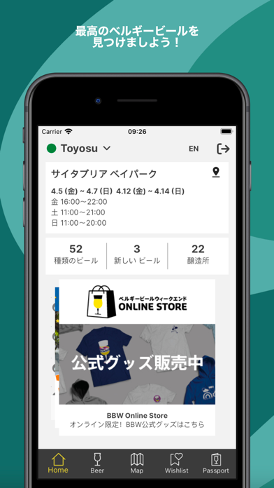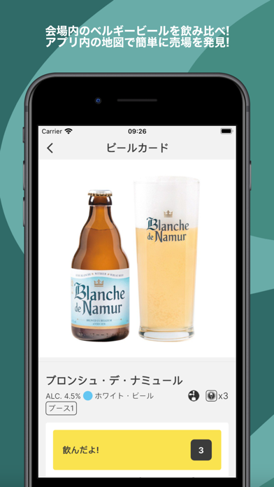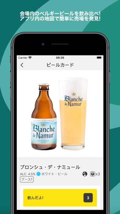 「ベルギービール・ウィークエンド」の公式アプリ。アプリ内では、90種類以上のベルギービールを紹介しています。すべて上記のイベントで飲むことができる種類。自分が飲んだビールの、名前や杯数、種類を記録することもできます。