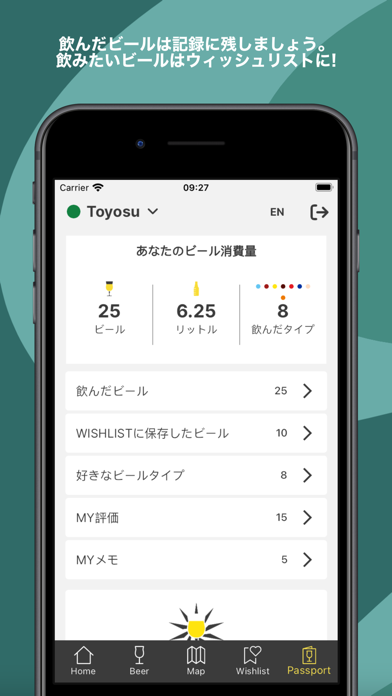 - 飲んだビールを記録して、気にいった種のリピートを可能に