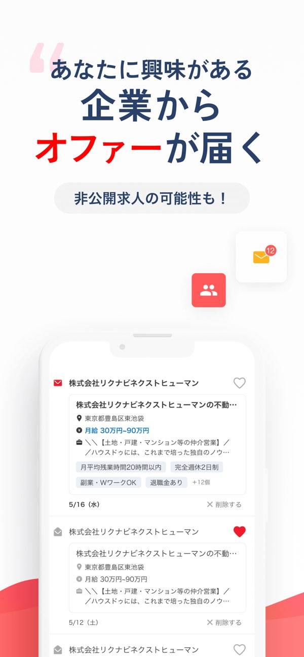 - アプリ内でメッセージを管理できるので、効率的に転職活動を進められる