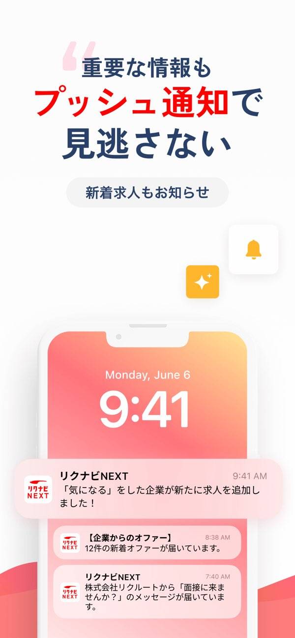 気に入った企業はリストに追加して応募も簡単。プッシュ通知で、新着情報や選考のリマインドも受け取り可能です。