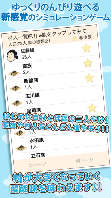 自分の苗字を冠した村の長として、村を育成していくシミュレーションゲームです。