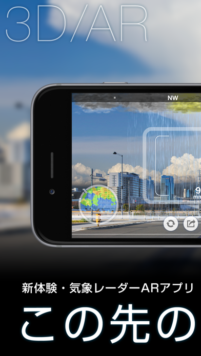 - スマホ端末を向けた方向の降雨情報をリアルな映像として表示