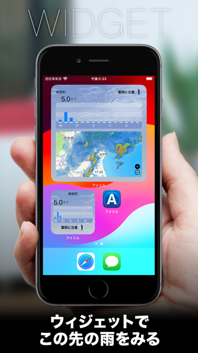 直近30分くらいの天気がわかるので傘を持っていくかどうかの判断にも役立ちます。