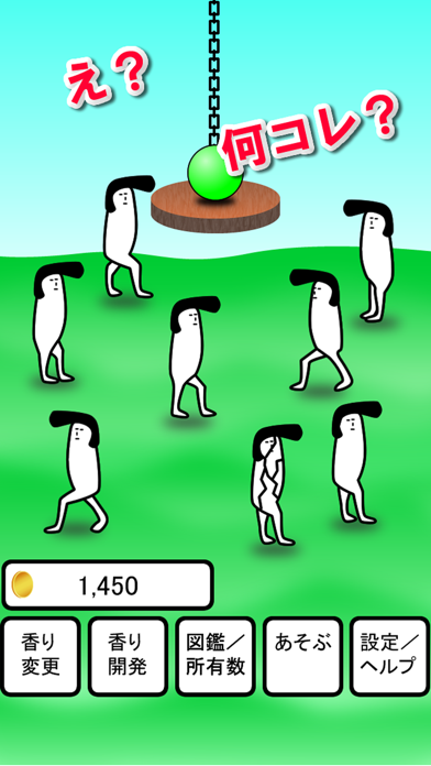 オレンジやメロンといった、いい匂いのする香り玉を設置して、集まってくる生物たちをタッチで倒し、コレクションしていきます。香り玉を選んだらあとは待つだけ。とてもお手軽なゲームです。