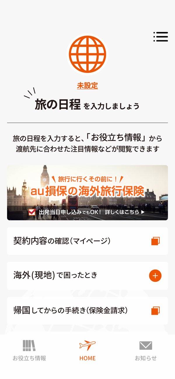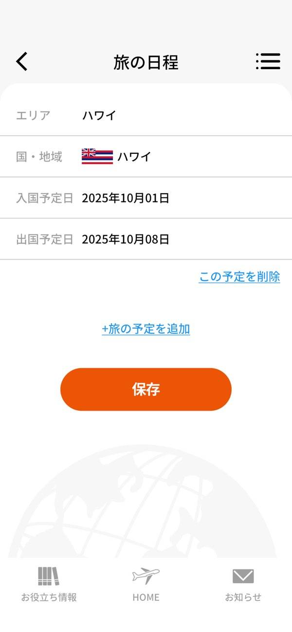 - あなたの渡航先に合わせた大使館や緊急連絡先を自動表示