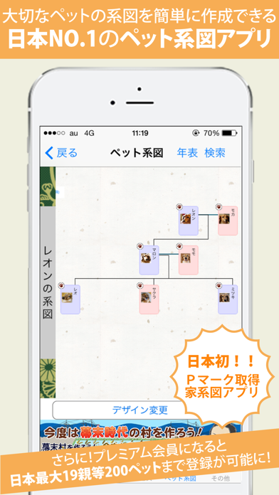 ペットと自分の家族の系図も作れる