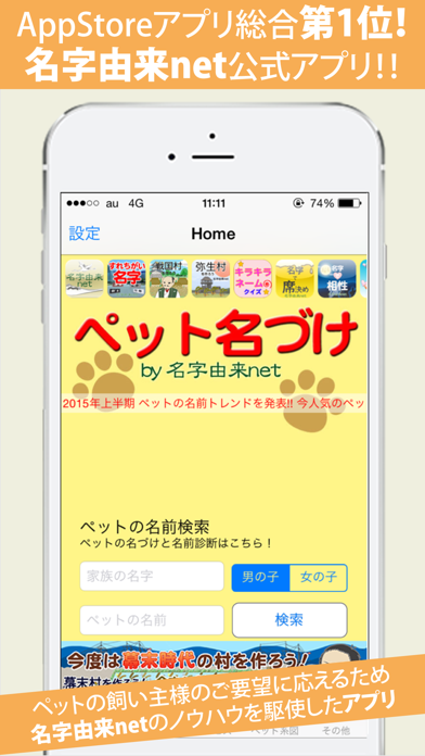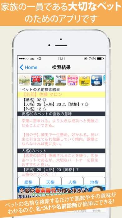- 名前の意味や画数でどんな性格に育つか診断するペット専用アプリ