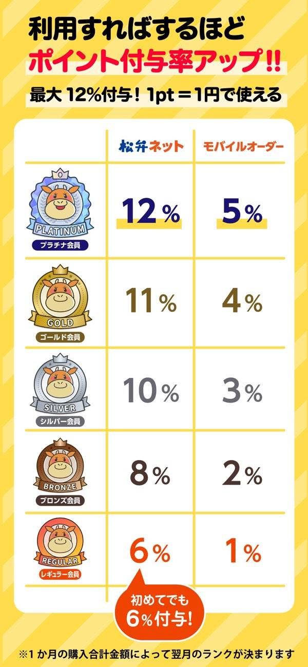 アプリを利用すればポイントが貯まっていき、特典を受けられます。毎月の支払い金額に応じて翌月のランクが上がり、より多くのポイントを獲得可能。さらにクーポンも利用すれば、よりお得に牛めしやカツ丼を食べられます。