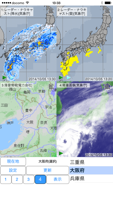 普通であれば天気アイコンでしか表示されない天気も、レーダーや衛星画像などで把握できます。しかも、好きな情報を一画面に分割表示できるので、「雨はどこで降ってる?」「台風は今どこにいる?」といったことを一度に把握できます。