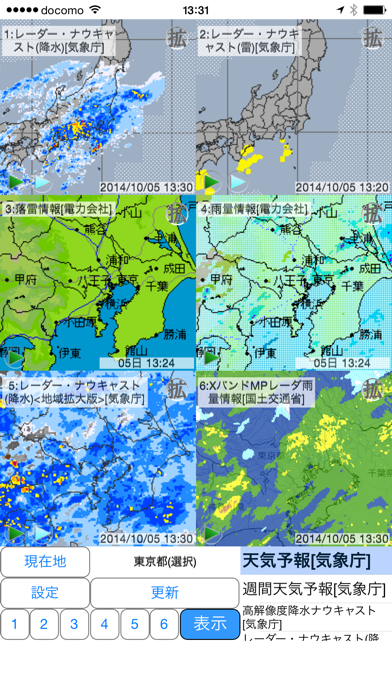 - 降水・落雷のレーダーや衛星画像を一度にチェックできる