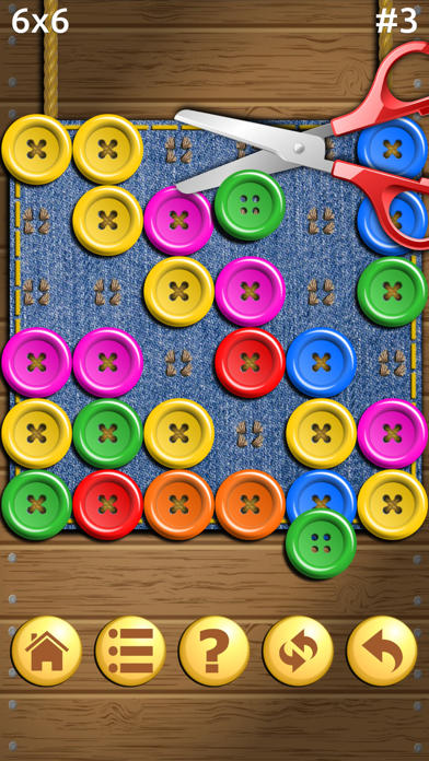 洋服の生地についたボタンをハサミで切っていく、一風変わったパズルゲームです。いわゆるスリーマッチパズルを少しアレンジしたようなゲームで、始めると止まらなくなる妙な魅力があります。