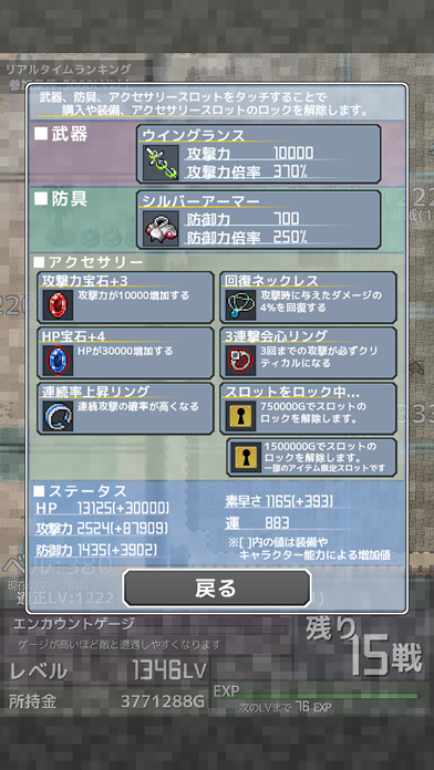 - 武器や防具を購入すれば、さらにステータスを強化できる!