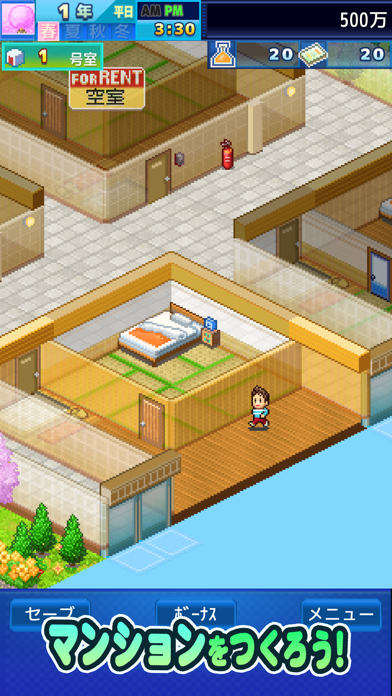 様々な人たちの人生を見守りながらの、マンション経営ゲーム。部屋の内装を自由に設定し、マンションの魅力を上げることで住民を増やしていけます。住民同士の結婚や出産、仕事が大成して収入アップなどマンション内でいつの間にか物語が繰り広げられています!住民が素晴らしい人生を送れるように、自分だけの最高のマンションを作り上げてください!
