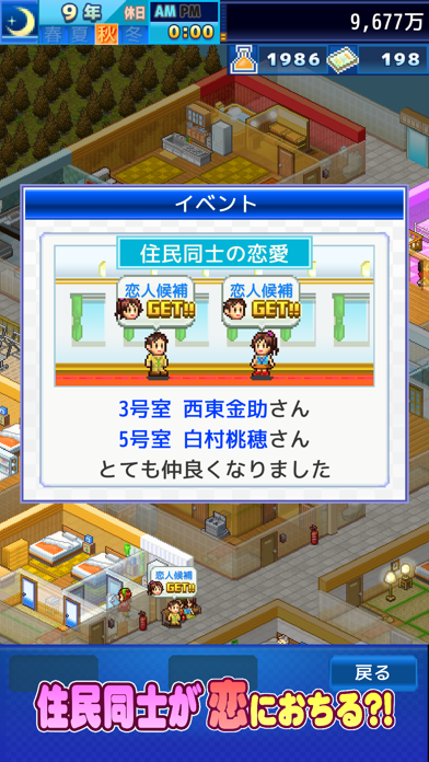 住民同士の結婚等イベント発生があるので本当にマンションオーナーになったかのように運営できるのでおすすめです。