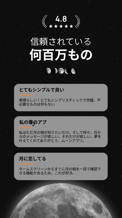 月をよく観察する、十五夜に毎年何かしらのイベントをしている、よく夜空を撮影する……なんて人におすすめ。用途はかなり限られますが、使いやすく美しいUIのアプリです。曇り空の夜、月の代わりにこのアプリを眺めるのも良いかもしれませんね。