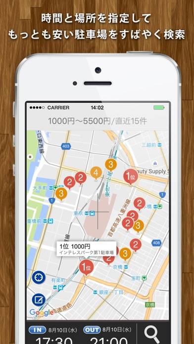 例えば、買い物で14時から15時まで止めたいという時、時間を入力すると地図上に「1」や「2」と書かれたフラグが現れます。これはつまり「1が一番安いですよ」という意味。これを見るだけで止める時間帯での最安値が分かってしまうというわけです。