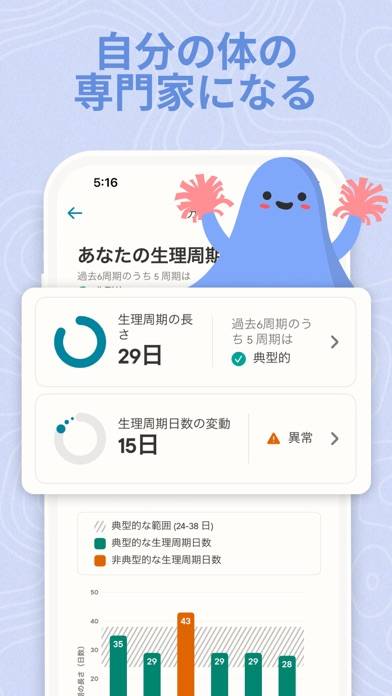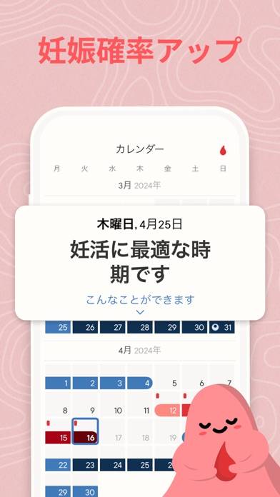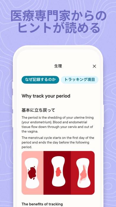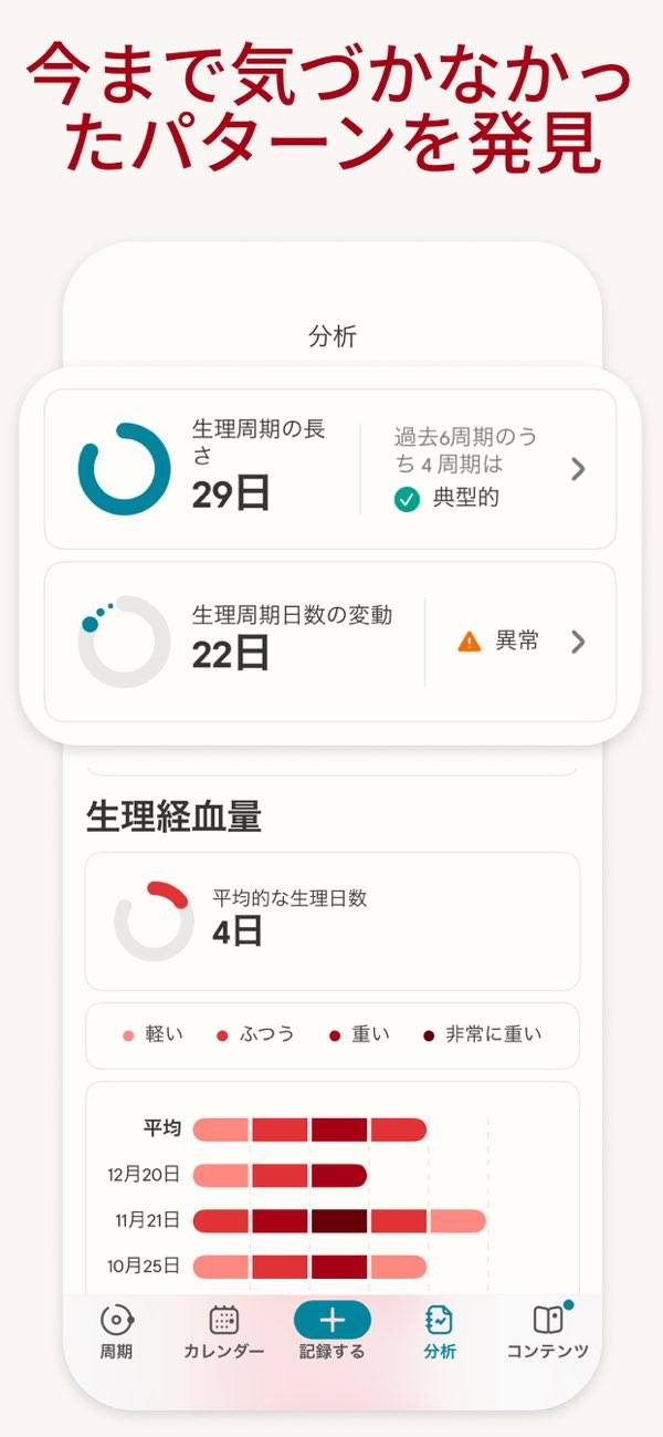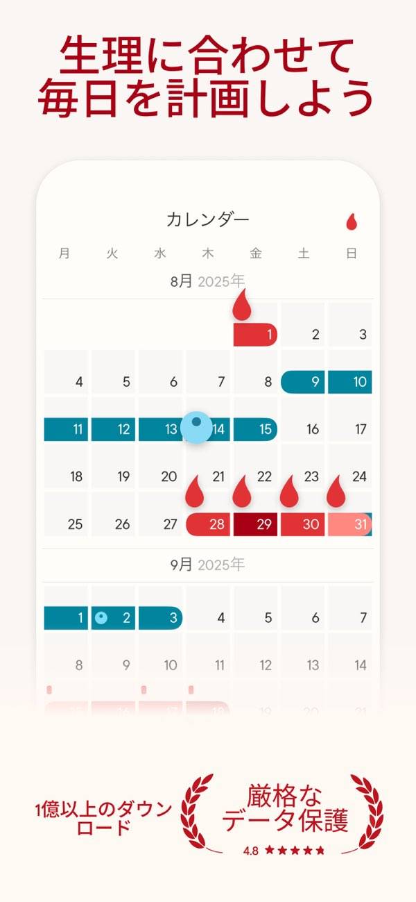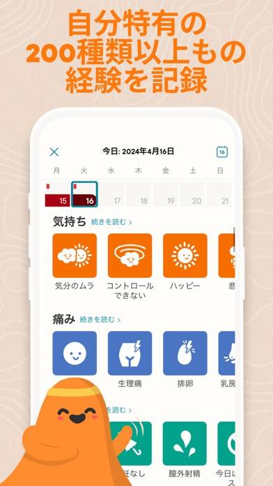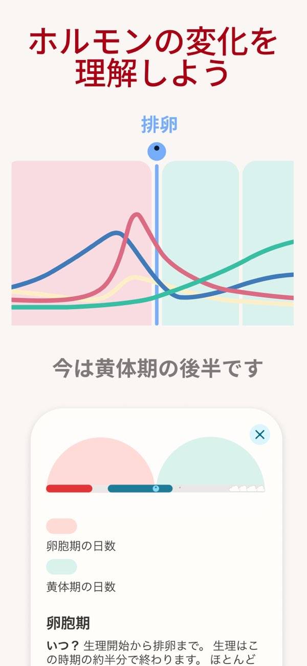 - 学習機能付き。その日の体調を答えると、より正確に生理周期が分かる