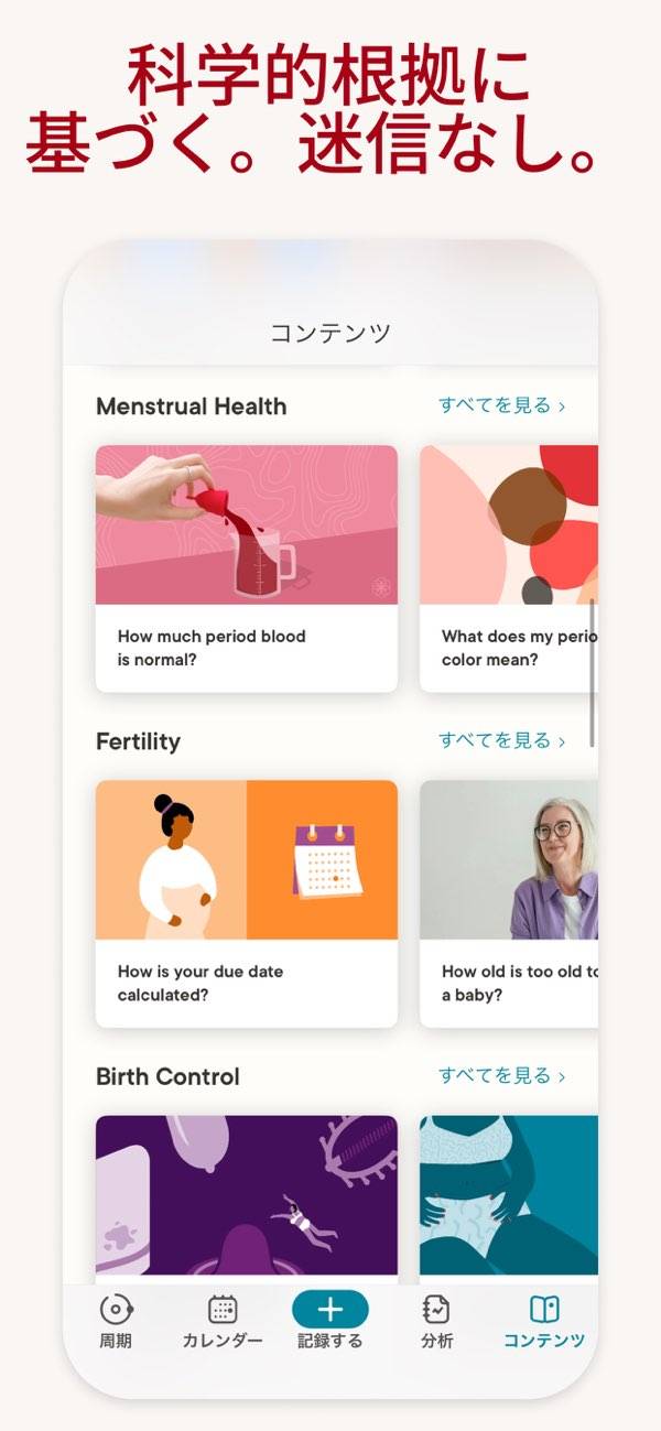 - 数十秒間、質問に答えるだけで生理サイクルがわかる手軽さ