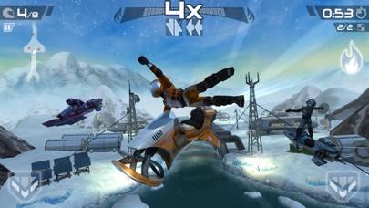 ジャンプ中に縦横へのフリック操作をすることでスタントができます。さまざまなクールなアクションを決められるだけでなく、ブーストゲージもチャージ可能。貯まったブーストゲージを消費して一気に機体を加速させれば、レースでも優位に立てます。