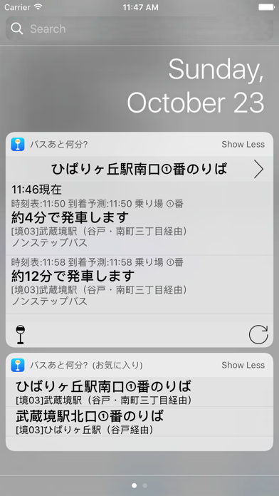 - 検索したバス停から、前後数カ所のバス停通過情報もまとめて閲覧可能