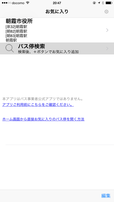 - 未登録のバス停はバス会社のHPを表示。時刻表のみ確認できる