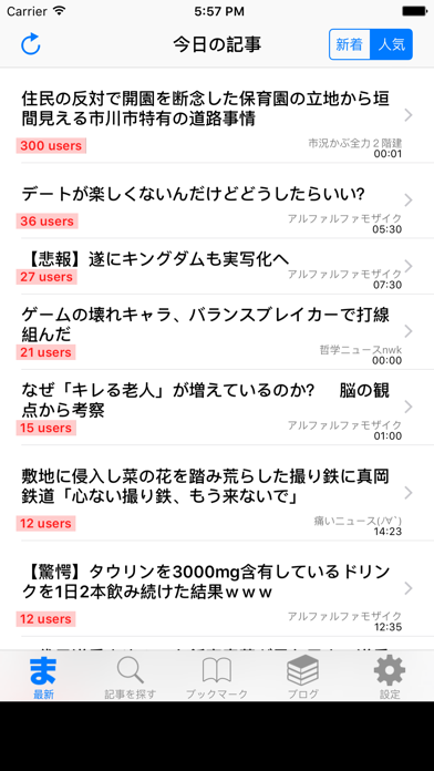 5chの記事を読みやすくまとめた内容が読めるビューアアプリです。過去記事を含め200万以上の記事が集まっています。かなりすっきりしたインターフェースなので、使いやすいですよ。