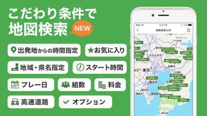 - スタート時間や料金など、こだわりの条件からゴルフ場やプランを探せる