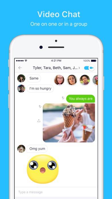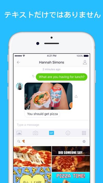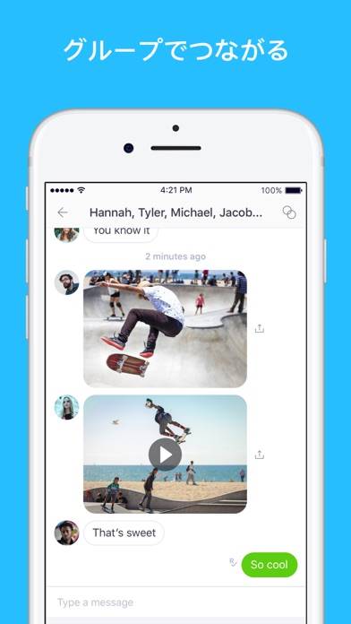 テキストベースでやりとりのできる、無料のメッセンジャーアプリです。もちろんチャットする以外にも画像・GIF・動画・Webページなど、さまざまなものを友達にシェアできます。