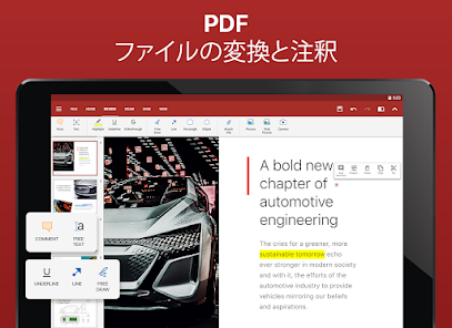マイクロソフトのオフィスソフトにバッチリ対応しているので、仕事で使う資料のほとんどはその場で直す事ができるでしょう。このアプリがサポートしているのはワード・エクセル・パワーポイント、それに閲覧のみのPDFです。この4つがあるので大抵の資料は問題ないでしょう。外部接続のコンパクトキーボードも合わせれば、超小型ノートパソコン感覚で使用できます。ギリギリで資料を完成させるような状況に陥っても、電車やタクシーに乗りながら資料を完成させることができるはずです。