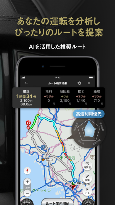 無料アプリと違って機能が豊富です。適格なルートで案内してくれて、とても助かってます