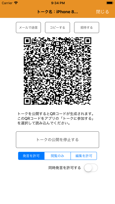 QRコードやURLで簡単にトークを共有できます。共有する際には相手に発言の権限を与えるかどうかなどを選択でき、スムーズなコミュニケーションや意思伝達が可能。ビジネスをもっと効率的にしてくれるでしょう。