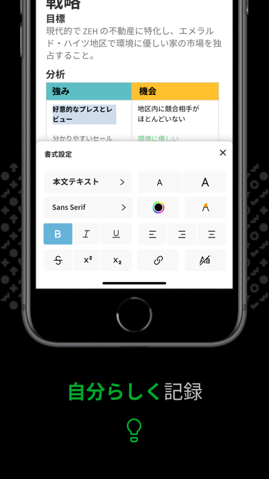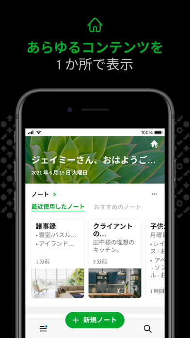 日本を始め世界的に高いシェアを誇るノートアプリ。文章はもちろんWEBサイトやPDFファイルまで保存でき、必要な情報を手間なく引き出せます。PCとスマホの両方で使えるため、ビジネスシーンでも活躍してくれますよ。