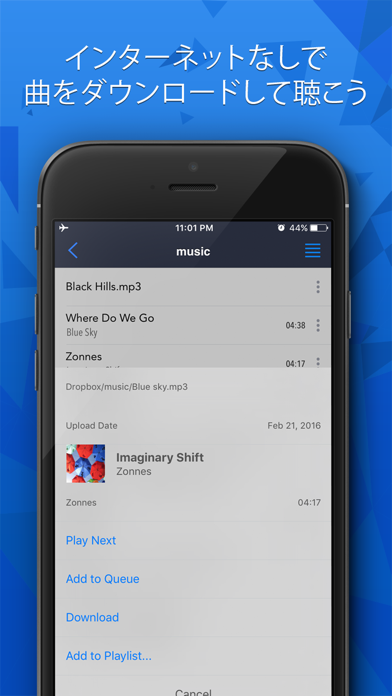 - 有料プランでは、クラウドから音楽をダウンロードしてオフライン再生も