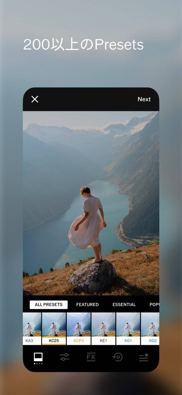 独特なカラーフィルターで、スマホでもクオリティの高い写真に仕上がりました。本格志向な編集機能は素晴らしいんですが、画面の操作性が良くないのがちょっと残念です。スタイリッシュさを意識している為か、ボタンがアイコンのみで説明がありません。使い易さを考慮してくれたら満点のアプリでした。