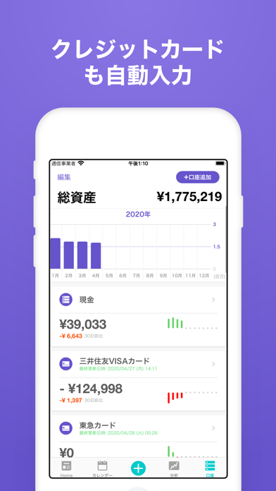 | 自動連携 | カード、信用金庫、レンタル、通販、投信、FX、電子マネー、JA、ポイント、証券 |