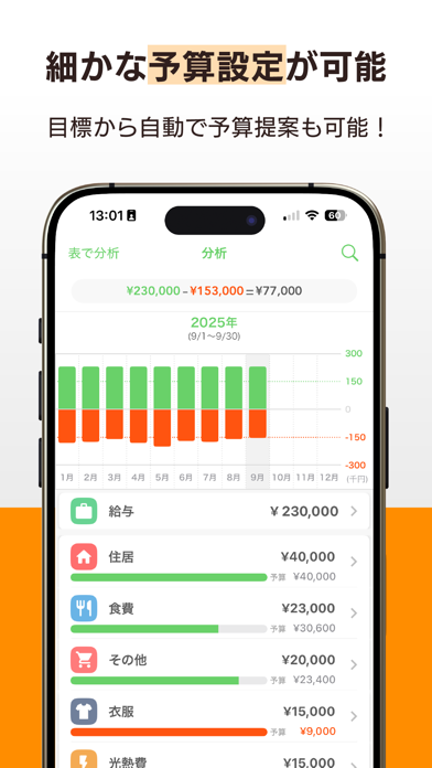 - グラフで支出の傾向が見えるから、節約のヒントもわかりやすい