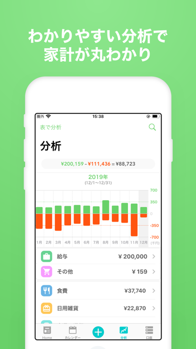 - グラフで支出の傾向が見えるから、節約のヒントもわかりやすい