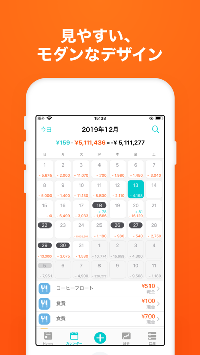 円グラフで家計簿データを確認出来るのが良かったです。無駄遣いを減らしたい場合に大きく役立つツールだと思います!