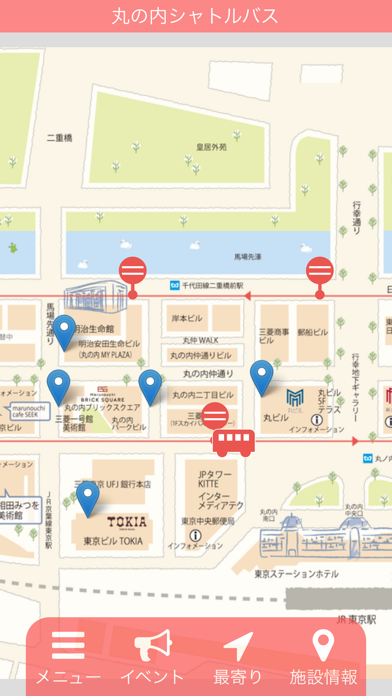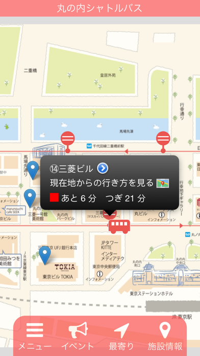 日の丸自動車が運営する3路線の巡回バスの運行情報を掴めるアプリです。リアルタイムでバスの位置情報を把握できるので、都心の移動をスムーズに行えるようになるでしょう。