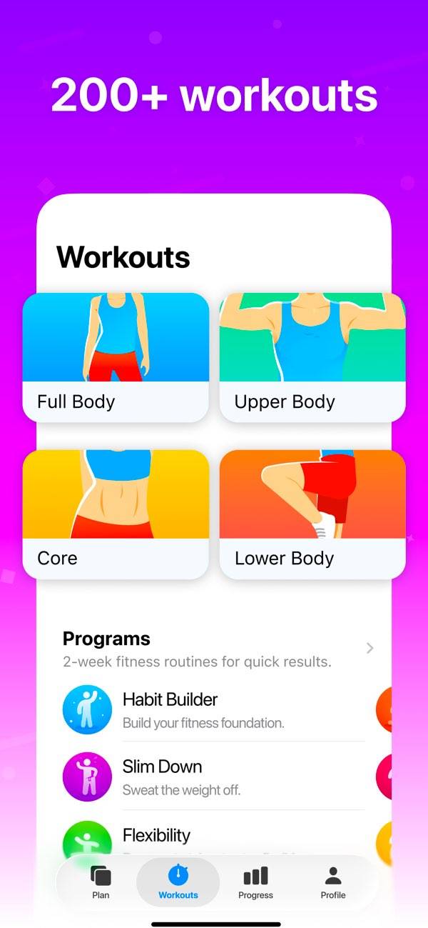 - 200以上のワークアウトを収録。効果的な運動がきっと見つかる