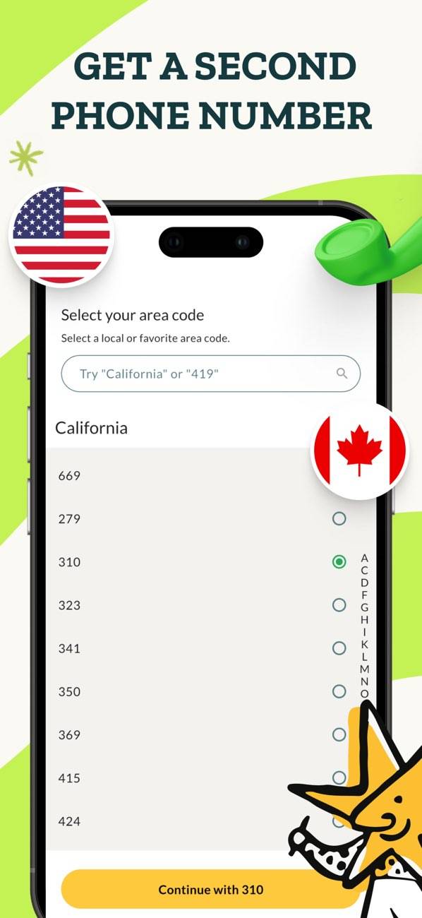 エリアコードを選択して、電話番号を取得できます。そのためアメリカの携帯に電話回線を使って通話が可能に。また有料プランに加入していれば、自分の好きな番号や覚えやすい番号にカスタムすることもできます。