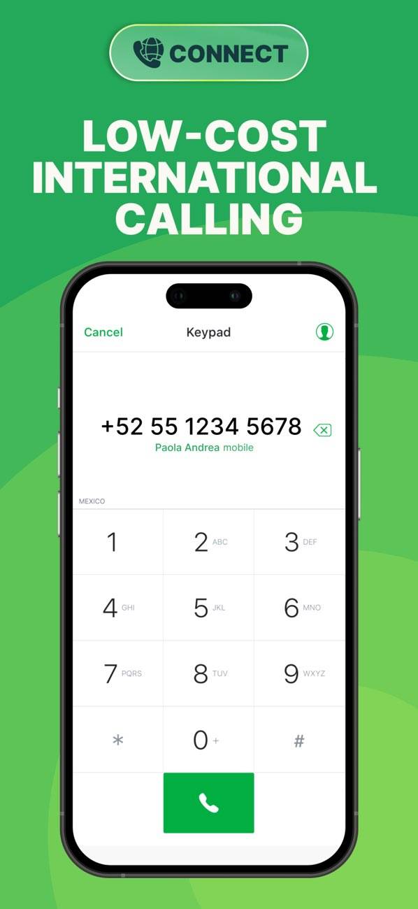 米国やカナダのモバイル番号へ通話やテキストメッセージを送信可能。仕事や留学で海外にいる友人や家族と気軽にやり取りできます。通常の国際電話より安い料金で利用できるほか、本アプリのユーザー同士であれば無料の通話も可能です。