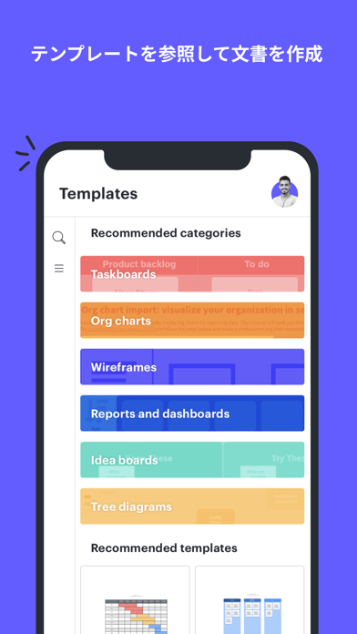 - フローチャートやマインドマップなどを、テンプレートから手早く作成