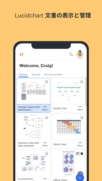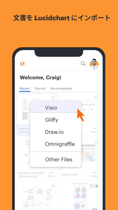 フローチャートやプロセスマップなどを、複数人で共有して作る作図アプリです。テンプレートを使ったり、ドラッグ&ドロップで一から図形を置いたりして、直感的な操作で作図できます。