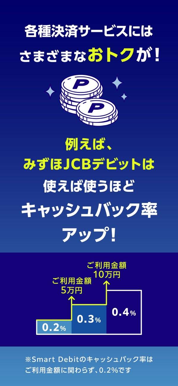 - デビット決済でキャッシュバックがもらえる! 特典も多数あり