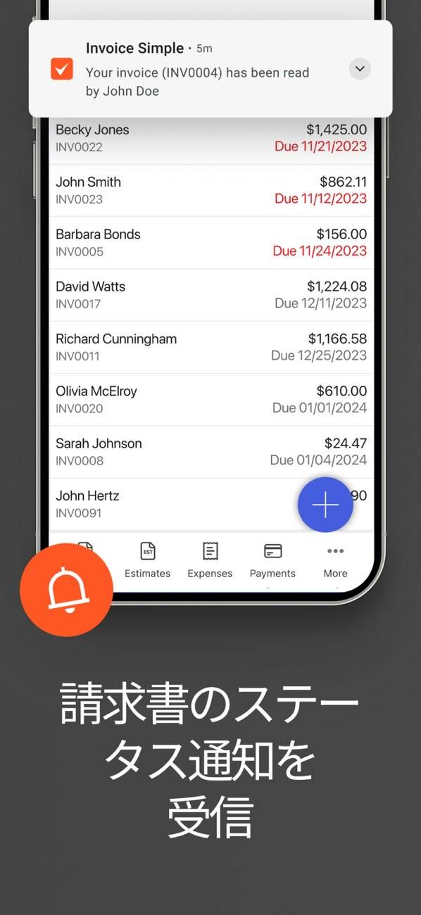 ビジネスの情報とロゴを簡単に追加できるプロ仕様の請求書テンプレートが利用可能。視覚的に優れた請求書を迅速に作成できるため、クライアントに対する信頼性が向上します。