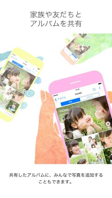 - アルバムを家族と共有して、みんなの写真を集めて楽しめる