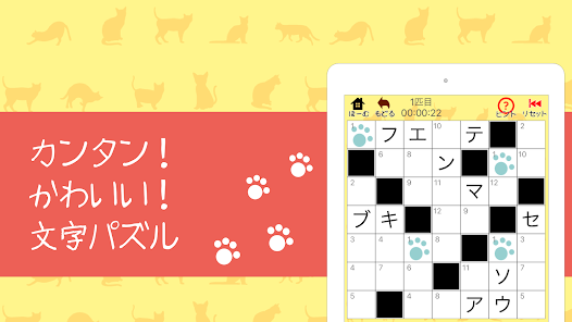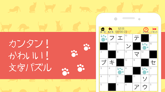 マス目に現れる、ネコの肉球が微笑ましいクロスワードゲーム